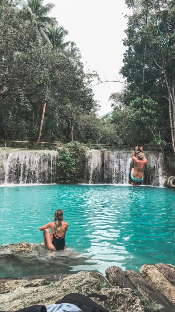 The Cambuganay waterfall has some of the bluest water we have ever seen! However, this is a popular tourist hang out spot, so get there early for the good photos. That being said, we had such a blast swinging off the rope swings and swimming. The water at these falls are actually quite warm and really enjoyable to swim in especially on a hot day.